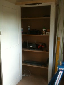 We have new, much more modern glass panels above the doors upstairs and at last, the cupboard in the nursery is shelved and can actually be used!