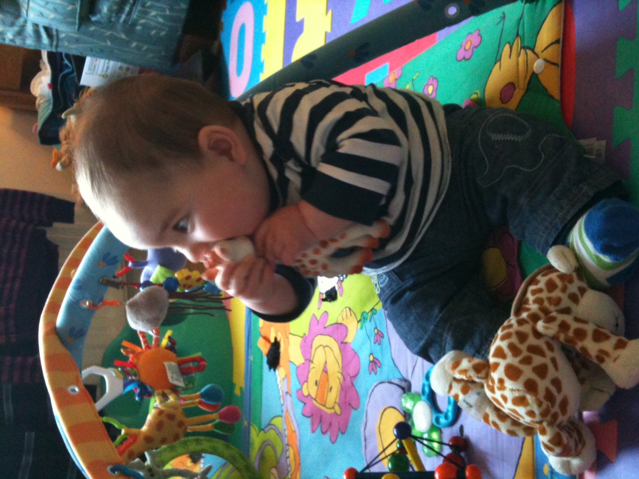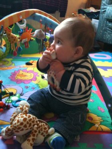 But you’re not reading this to find out about me doing very little – what was Alex up to? Well, it seems he was having a lovely time with Jacqui and his new friends (who seem to love him – every evening when it’s time to go home, he gets kisses from all the older children!). He’s been to lots of parks and baby groups and eaten lots of new food (in fact, Jacqui says he “eats like a horse”). And he’s getting really good at sitting up on his own. He seems really happy with Jacqui and has settled in brilliantly – I am so relieved to have no concerns about returning to work. Hoping he’s on his best behaviour next week as Jacqui is being inspected by OFSTED.