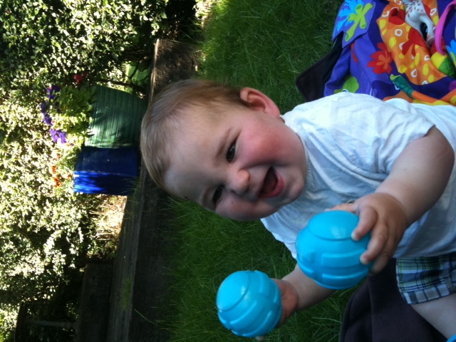 Alex didn’t let his bruises ruin the weekend, and we had a lovely time enjoying the sudden heatwave.  We spent this morning playing in lovely Dulwich Park, and this afternoon having fun in the garden.