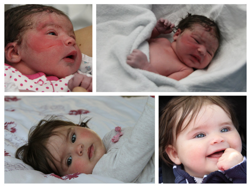 Sophie got to that milestone on Friday – I can’t believe how quickly the time has flown by. It seemed to take forever for Alex to hit six months, but this time round, time’s vanished. I’m not sure if it’s because I’m more relaxed this time round, if it’s because she’s an easier little baby or because I know this is the last time I’ll be on maternity leave. Anyway, here she is then and now: