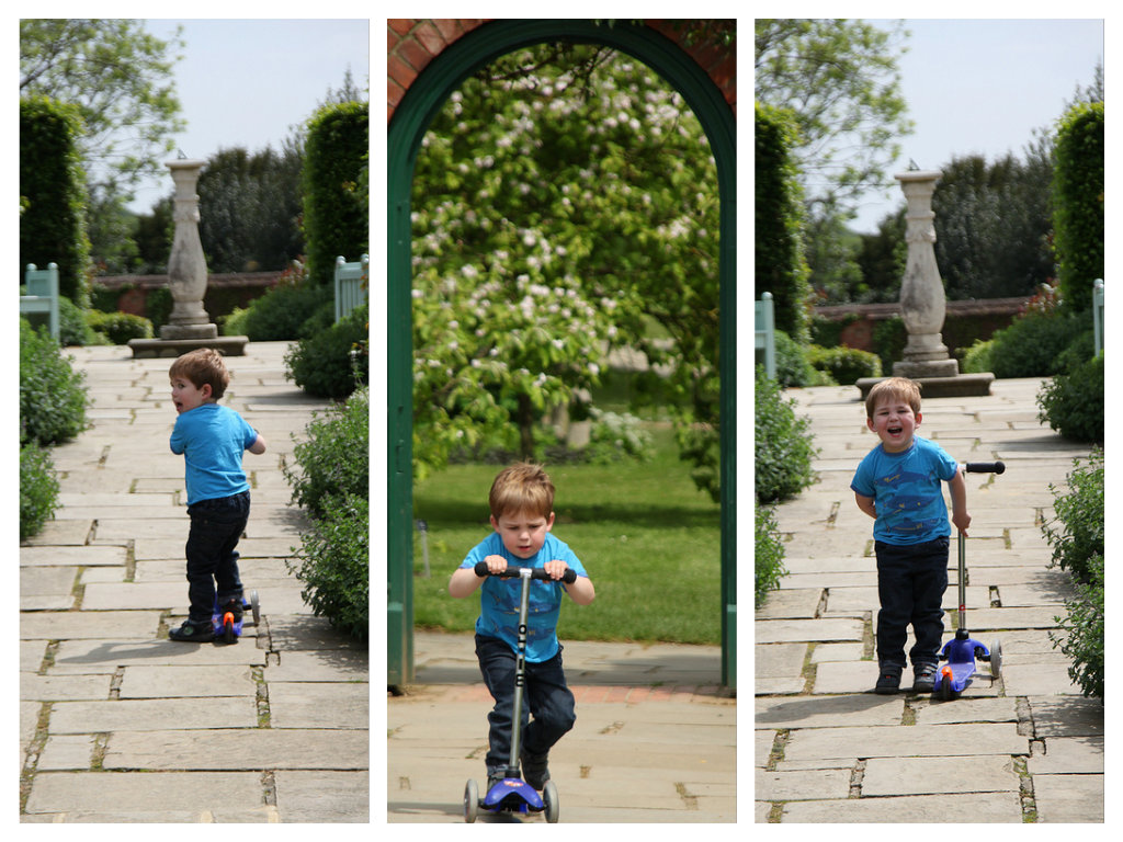 Yesterday, we decided to make use of our National Trust membership with a trip to beautiful Chartwell, family home of the Churchills. We packed up the car with blankets, picnic, buggy and of course the scooter and headed out to the gorgeous Surrey Hills. It’s less than an hour from home, but it really does feel like you’ve escaped to the country. I think we all enjoyed the fresh air, and Alex certainly made the most of his scooter on the flat paths around the house and walled gardens (we managed to persuade him against scooting down the steep hills – it was a little too busy for that!)