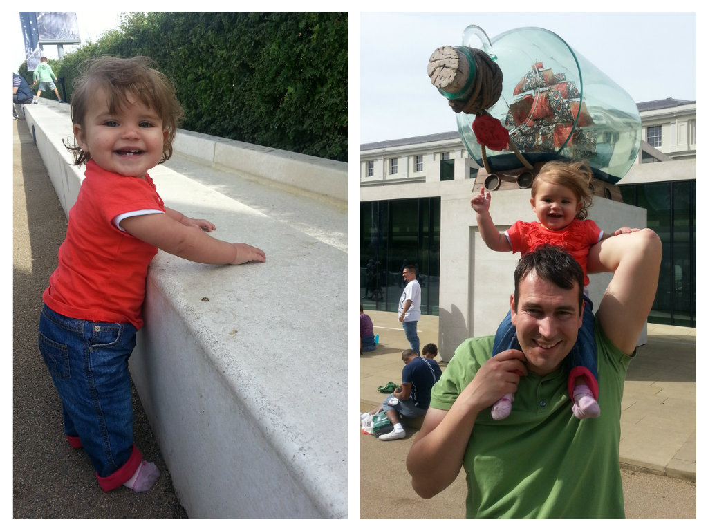 After lunch and some Meantime Ale, we then let Alex partake of one of his very favourite pastimes – playing in the water features at the National Maritime Museum (and getting very wet in the process!). This time, Sophie could also join in, finding the waterfall ideal for some cruising practice.