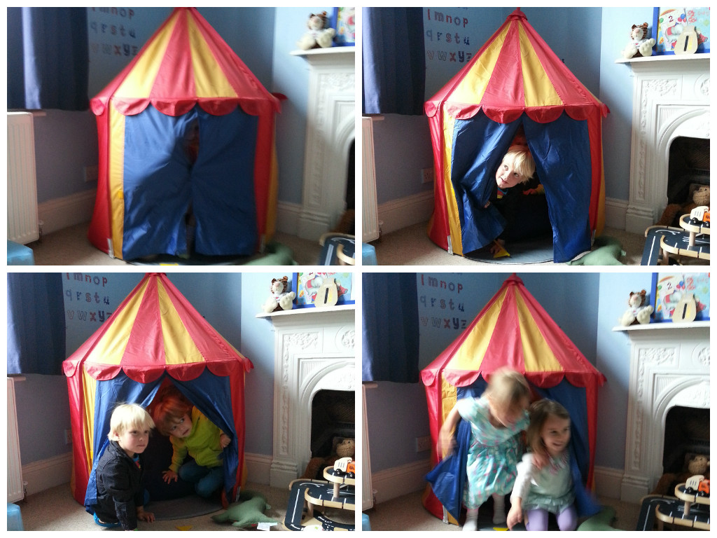 And then as the sugar levels increased, a slightly wilder grouping running riot upstairs. We managed to squeeze seven children into Alex’s tiny playtent: