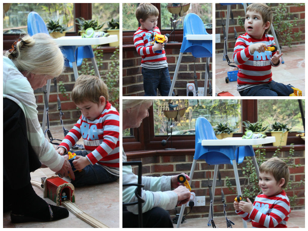 Alex was presented with a brilliant meccano tractor set, and immediately made Daddy and Nanny Michele make it for him. He had lots of fun with Nanny Michele playing with his trains and the meccano wheels!