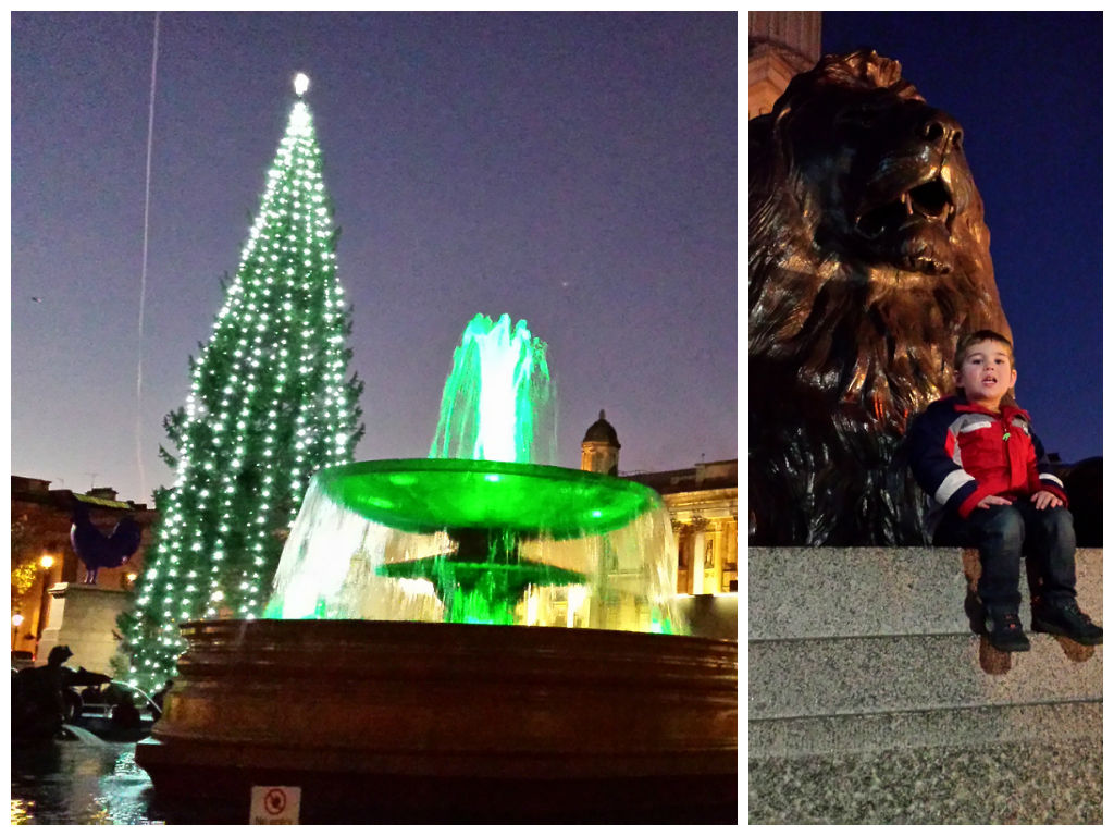 We continued our festive theme with a quick trip up to London to Trafalgar Square to see the big Christmas tree there. The square looked stunning in the dark, with Alex particularly loving the changing colours of the fountains! And of course, he wanted to climb on the lions: