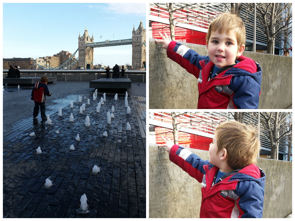 So the two of us headed up into London, leaving Sophie and Matt to have a local morning together at a music class. With the weather crisp and clear, I was pleased to have some time spare so Alex could play in the fountains along the Southbank before the show started. A chance for him to burn off some energy before having to sit still! As usual, he loved them, and thankfully managed to stay relatively dry!