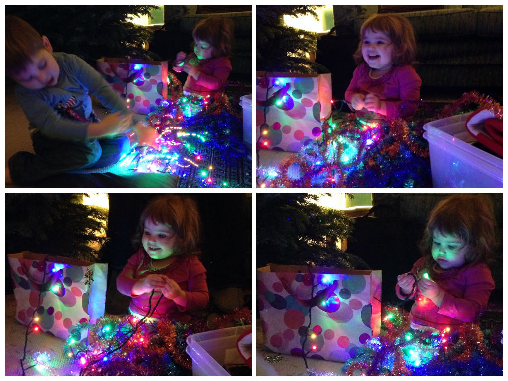 To close, here are a few pics that I should have shared last week but just spotted on Matt’s phone. It’s Sophie and Alex having a blast putting the tree away last week. Sophie does love those lights!
