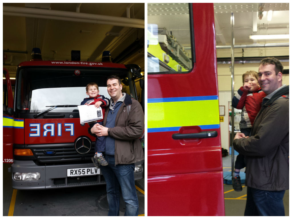 This morning was another early start for our weekly trip over to Brixton for a swim. Alex was in for a treat when we walked past the Brixton fire station – unusually, the doors were open and when a fireman spotted Alex gawping at a fire engine, they invited him in to have a look around. He was thrilled, and even got to sit in the driving set of the engine. So nice of them!
