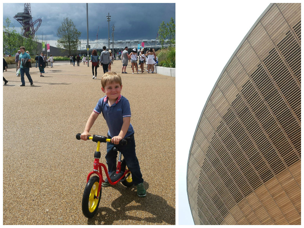 Our optimism was rather unwise as the heavens opened as soon as we parked up, so we amused ourselves in the Westfield Shopping Centre children’s play area and then having a rather damp picnic under an awning outside! But thankfully things improved, and the sun came out just as we were running out of things to do. So we took the familiar route we took so many times back in 2012, and took our children into the Olympic Park!