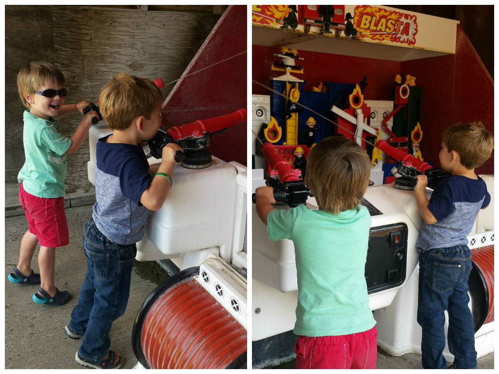 Alex and Sam begged and begged for the coins needed to take on the water canons in the play area – and were so good at lunch I gave in: