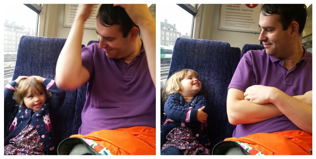 On the train home, Sophie and Matt had fun together, Sophie mirroring everything her daddy did. These photos really do make me grin!
