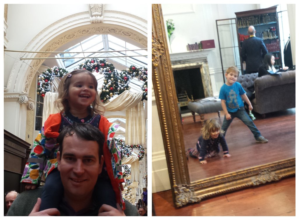 We had a cultured Saturday a couple of weeks ago, dropping into Saville Row to get Matt measured for some new shirts (most expensive part of being 6’5″ and lanky!). Sophie loved all the Christmas decorations in the Burlington Arcade. They both loved the massive mirror in the tailors – I was terrified they were going to do damage to the beautiful building and showroom, so we quickly made our escape!