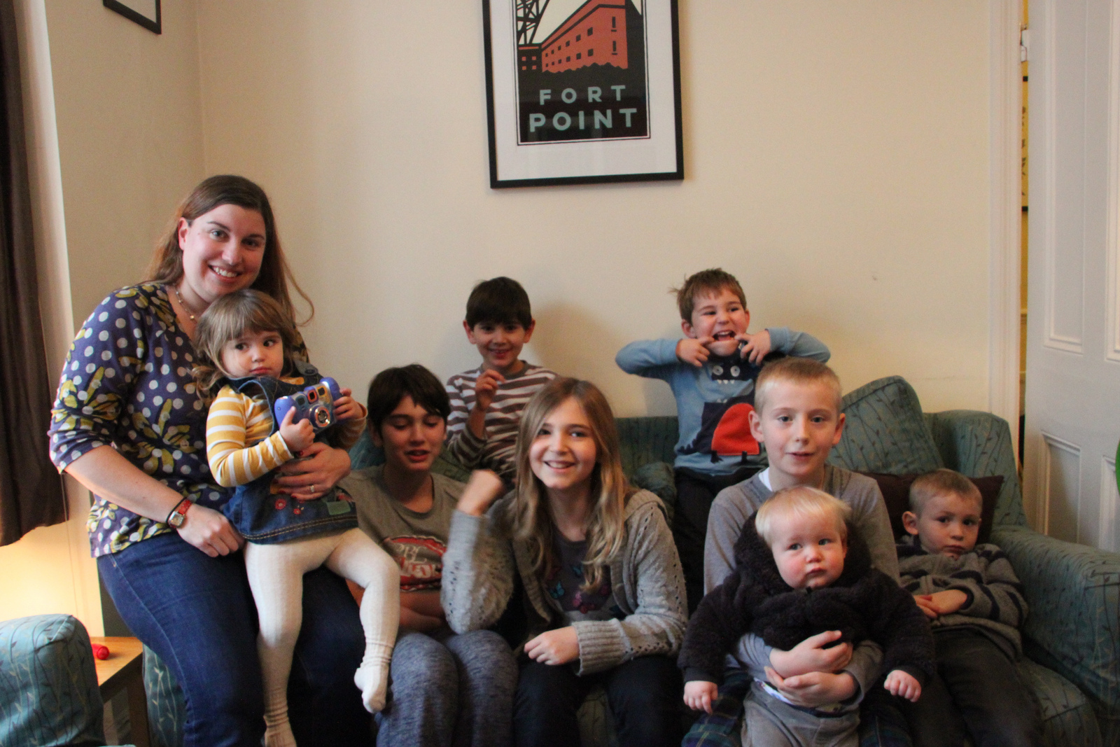 We made a vague attempt at a group picture, but the two littlest weren’t keen at all – but here’s the best we managed to get (Sophie wouldn’t go in the picture at all unless I was with her!). Here’s Sophie, Oliver, Max, Jessica, Alex, Thomas, William and Edward Agar: