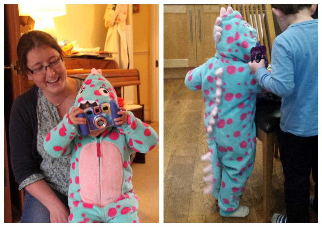 As soon as the Agars departed, my friend Jo arrived from Newcastle for the evening. She was greeted by Dinosaur Sophie, who was modelling one of her favourite Christmas presents from her Auntie Margaret!