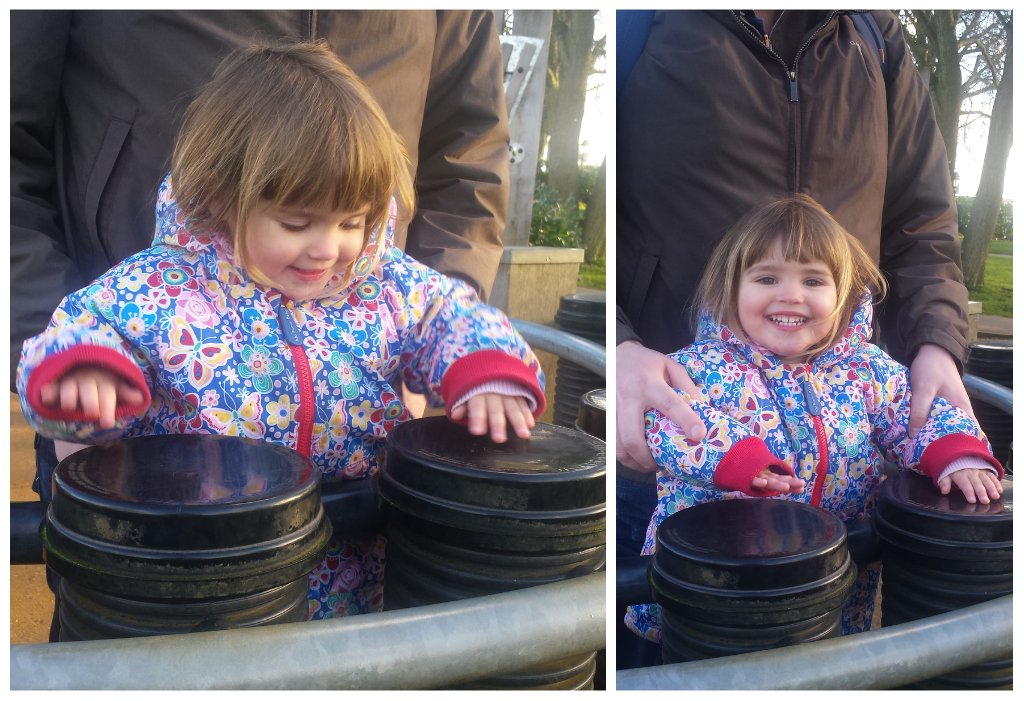 And even more fun in the gardens – Sophie loved doing some drumming with her daddy.