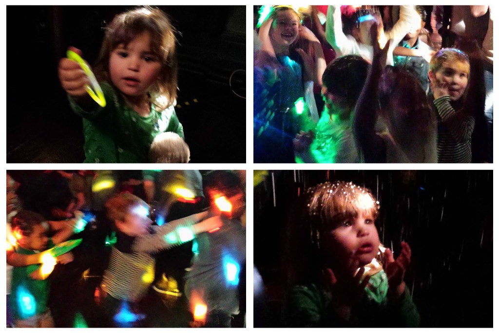 We couldn’t have been more wrong. It was a fabulous rave-style disco. The room was dark with disco lights everywhere, there was a proper disco ball, foam machine and even glow sticks for the kids. The music was loud and there wasn’t a nursery rhyme in sight – instead proper dance tunes and classic disco tracks.