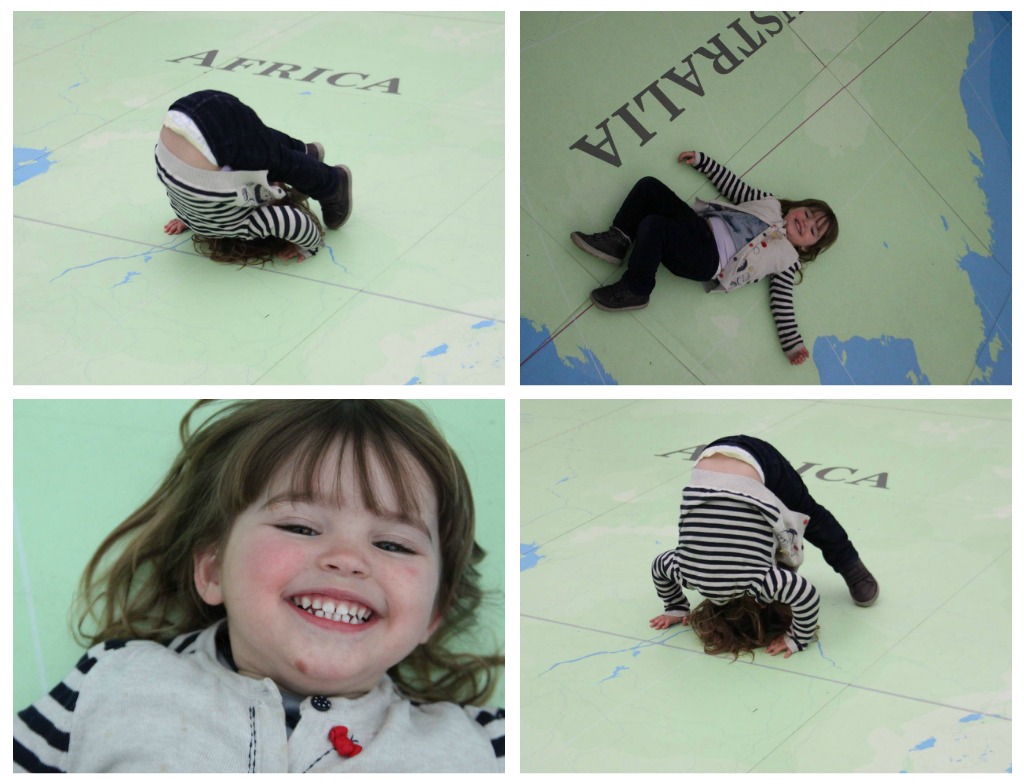 After a picnic lunch, the children had a run around on the “Great Map” in the middle of the museum. Sophie rolled and rolled all the way over the map of the world, loving the space and freedom to play