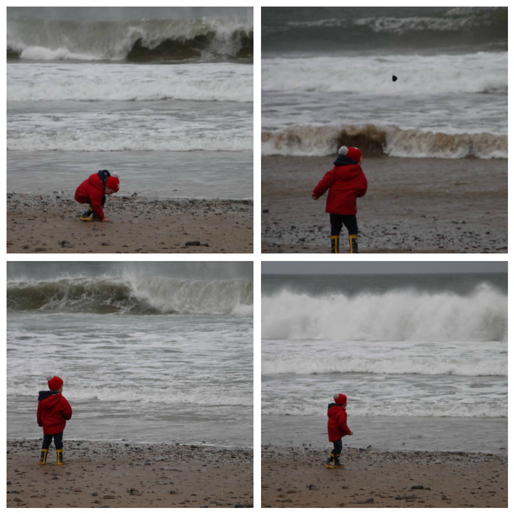 The children weren’t quite so interested in peace and quiet – finding the beach one enormous playground! Of course, Alex made a beeline for any stone he could lay his hands on, throwing as many as possible into the waves.