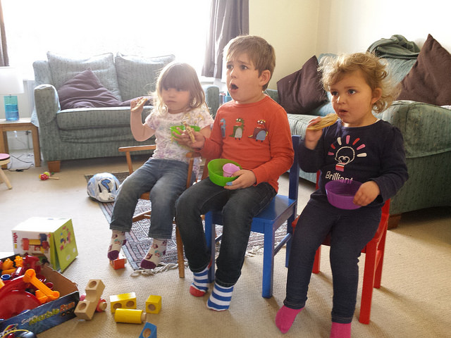 We had a quiet afternoon at the local park, in our garden, and chilling out in front of “Frozen” with cookies. Here’s my favourite picture – I love the drama on their faces (they’re watching the opening sequence of “Frozen” with the shipwreck!). So engaged!