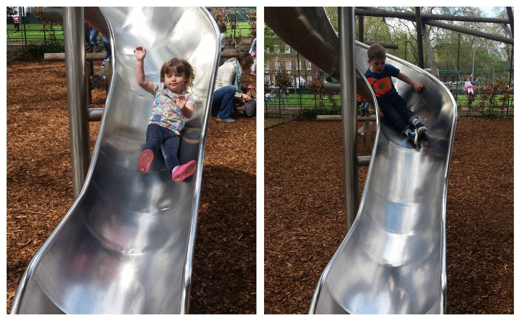 We didn’t stay long, escaping to the grounds for a quick hotdog stop, before wandering over to a park I’ve wanted to visit for years – Coram’s Fields. A 7 acre park dedicated to children’s play – where adults aren’t permitted unless accompanied by an Under-16, I can’t quite believe we’ve never been before! We thought we’d stay for an hour, but ended up stopping for three!