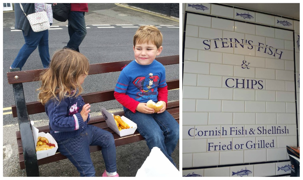 Of course, while we were in Padstow, we had to have some Rick Stein fish and chips. We played it safe, not being brave enough to take our rowdy pair into a smart restaurant, so got takeaway from the little fish and chip shop – we were not disappointed. It really was excellent – and relaxing on benches overlooking the harbour – made for a lovely end to our Cornish week.