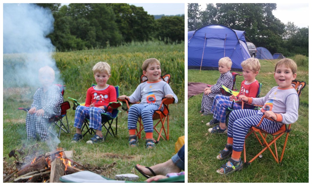 On the first night we were there, poor Sophie wasn’t on the best form – still suffering from the end of a midsummer cold. So she snuck off to bed early while the boys enjoyed the campfire.  Thankfully, a sleep (mostly on me) left her feeling much better on the Saturday morning.  I love how snuggled up she is with her bunnies and pandas!
