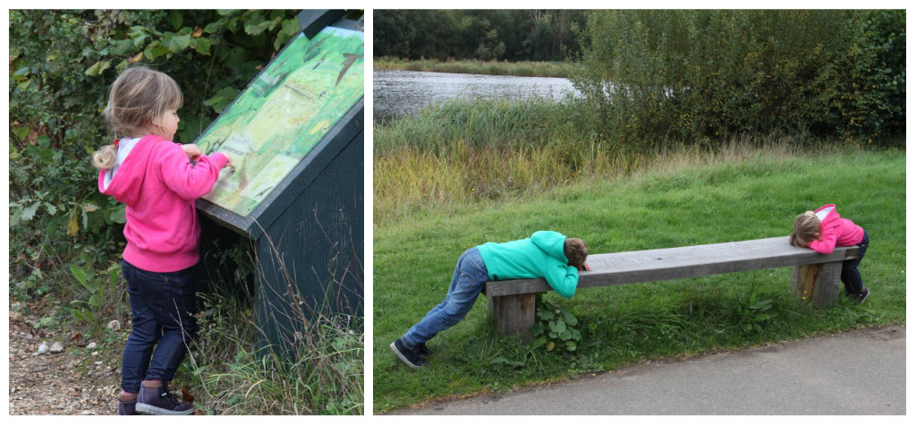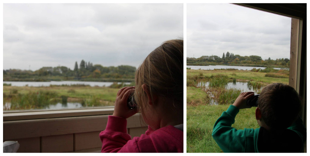 We even spent time in some of the hides – and Alex and Sophie had a go with the binoculars to get a closer look.  Alex was very excited to see a Great Crested Grebe catching and swallowing a fish whole!