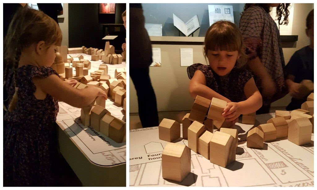 After the early, expositional section, the exhibition became more hands-on. with thematic sections focusing on different aspects of the Great Fire and its legacy. The children, of course, enjoyed dressing up and having a go at putting out the fire 1666 style!