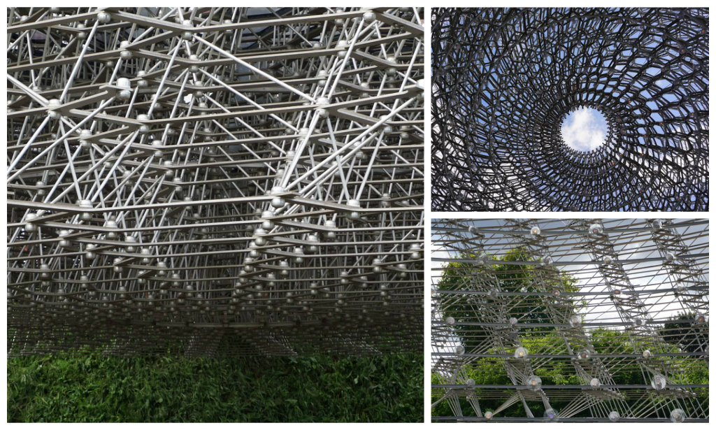 It was an incredibly immersive experience as the structure responds to the intensity of bee activity in Kew’s nearby real beehives. Vibration monitors within the real hive detect bee activity, and this is translated into visual representation through the 1000 LEDs within the structure and an eerie soundscape of bee sounds and musicians. Bizarre but quite moving!