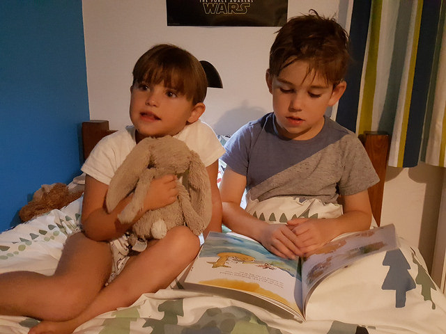 On Saturday evening, Alex and Sophie were still talking about Mrs Armitage, so they cuddled up together in Alex’s bed and he read it to his sister! So cute! I think it’ll become a regular for us!