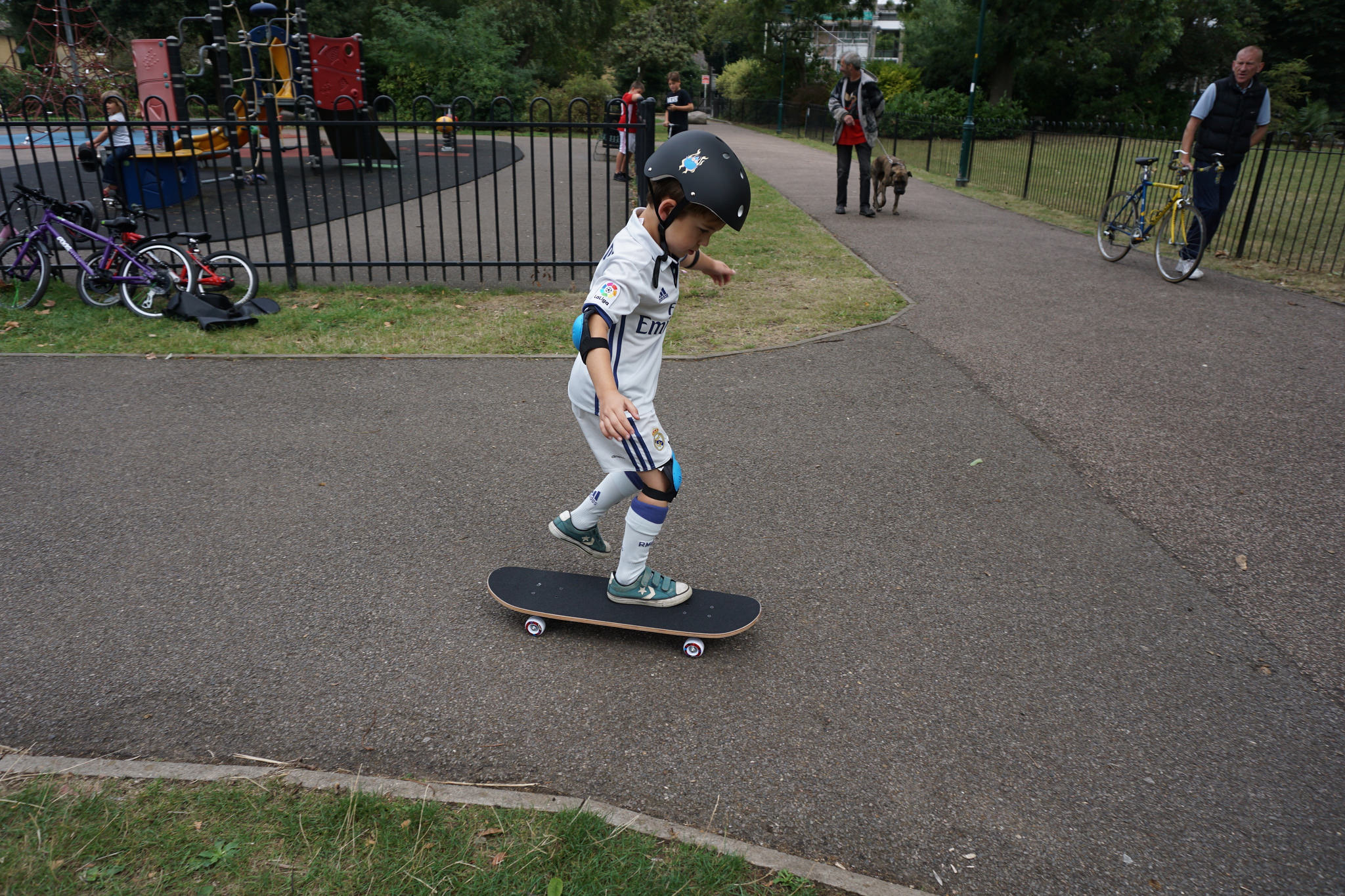 Alex made a few attempts to master one of his birthday presents – a skateboard! He’s finding it tricky, but I know he’s very proud to be boarding around the park. It’ll be a while before I’m brave enough to let him loose on the hills around where we live!