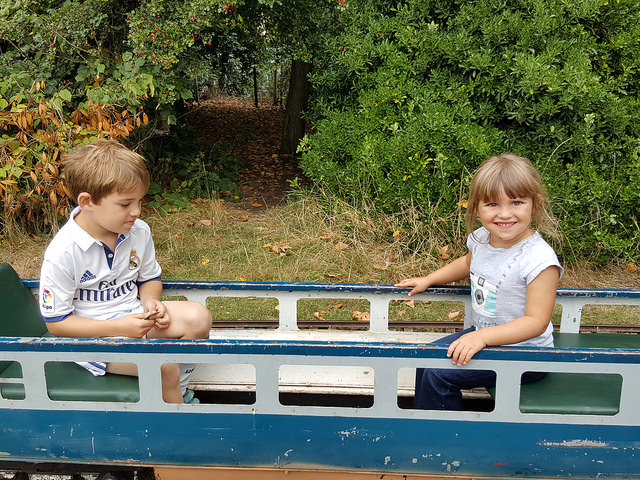 We’ve had a couple of lovely, local weekends – one of which we partly spent doing a little photo diary about Herne Hill for Alex’s homework. So we headed down to the Farmers’ Market and Brockwell Park, taking loads of snaps along the way. Here they are on the Brockwell Park Miniature Railway, posing for Alex’s homework diary!
