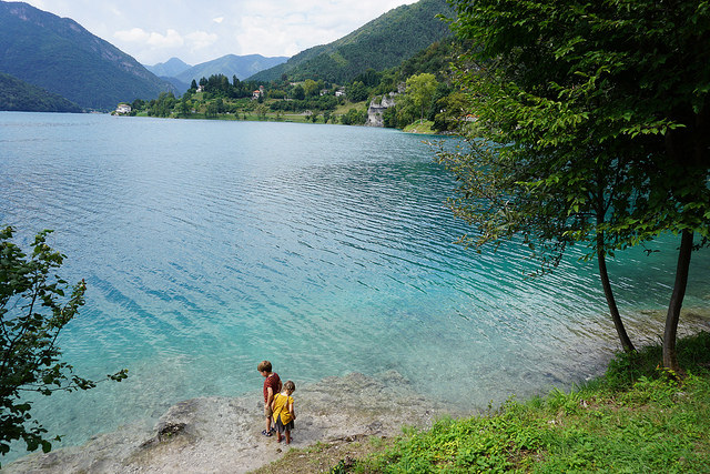 While we loved Lake Garda, the beaches were pretty busy, so we spent a couple of days on the nearby Lake Ledro. Much smaller and quieter, it was the perfect place for a relaxing family day out. It was absolutely stunning – and we attempted a bit of a walk around its shores, but the kids weren’t keen on walking in the hot weather, so we didn’t get far! Turns out Alex and Sophie don’t do well in the heat!