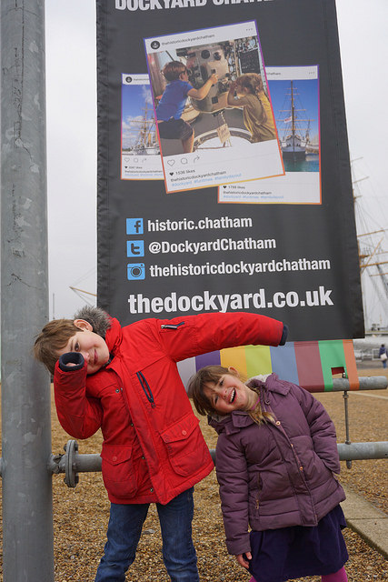 Here are my crazy pair, absolutely thrilled to find themselves featuring on the Dockyard banners in a photograph I took on HM Submarine Ocelot last year! They are convinced they are now super famous!