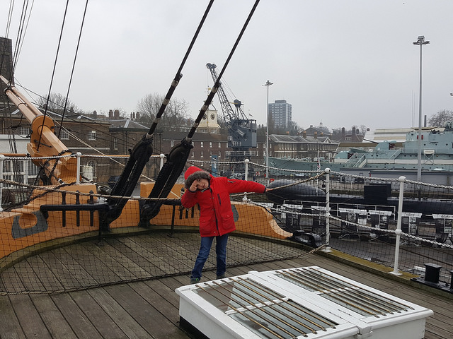 We then explored HMS Gannet, a Victorian sloop. Alex was so thrilled to be on a real live pirate ship (!), he dabbed for joy!