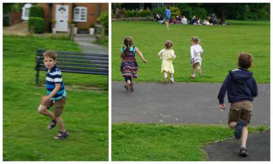 The children raced each other across the common – Alex being very sweet and letting the little ones win!