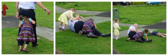 My dad got a bit over-enthusiastic with his rugby, and encourage the children to tackle him – which they very successfully did (he’s fine after the onslaught by the way!)