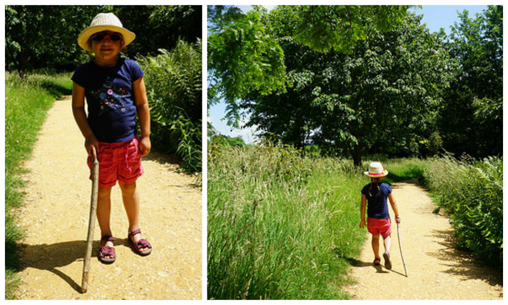 Full of lunch, we decided to explore the Garden properly, so set off along the trails. Sophie looked the part with her walking stick and hat!
