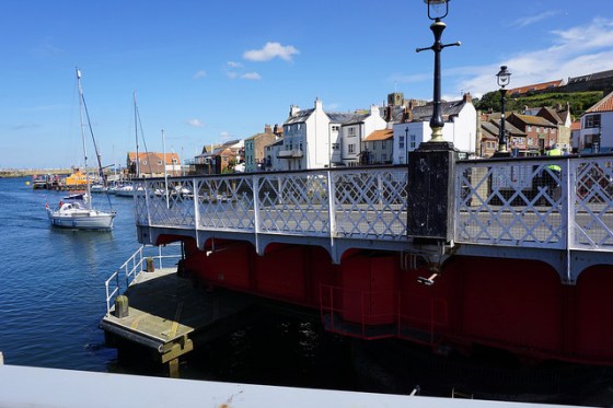 We headed straight towards Whitby Abbey, thoroughly enjoying wandering through the seaside resort.  I loved the mix of traditional fish and chip shops and ice cream parlours, combined with cute boutiques and pretty craft shops.  I think I could have parted with quite a bit of cash if I’d explored at my pace, but the children wanted to keep climbing!  We were enjoyably delayed by the 100-year old harbour swing bridge moving into action, and watched several yachts glide by while we waited.