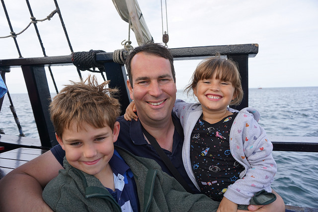 After lunch, it was time to explore the coastline, so we took a short boat ride on a replica of Captain James Cook’s Endeavour!  Here it is passing by later in the afternoon – so pretty!