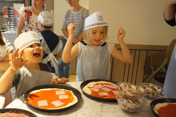 And here’s Sophie very excited about adding her toppings!