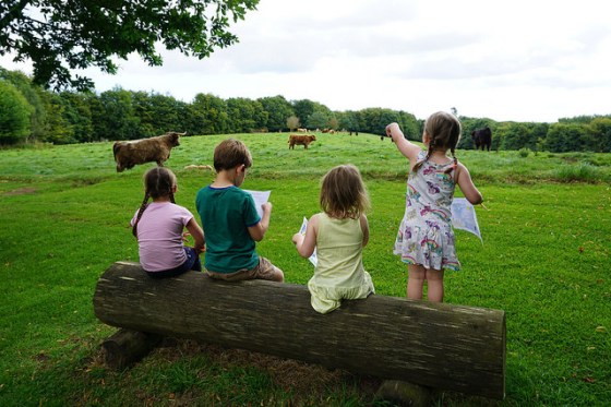 Here’s Alex and Sophie with their cousins Lucy and Rose meeting the locals at the start of the trail and inspecting the worksheet.