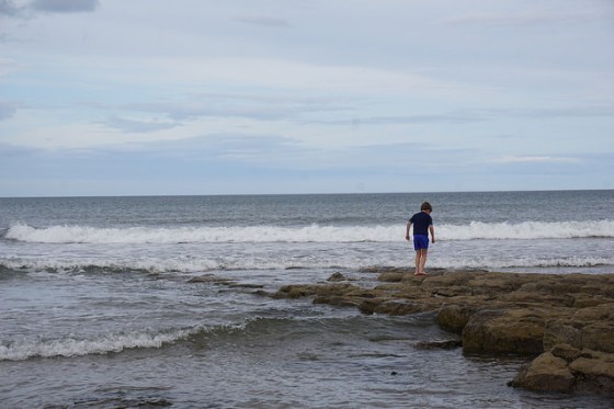 The kids spent ages clambering barefoot over the rocks getting splashed by the surf.