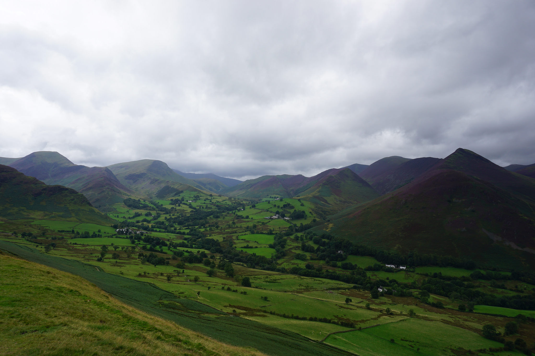 When we were about half way up, we stopped for our picnic and spent ages just enjoying the far reaching views. It all looked very atmospheric with the moody, grey sky.