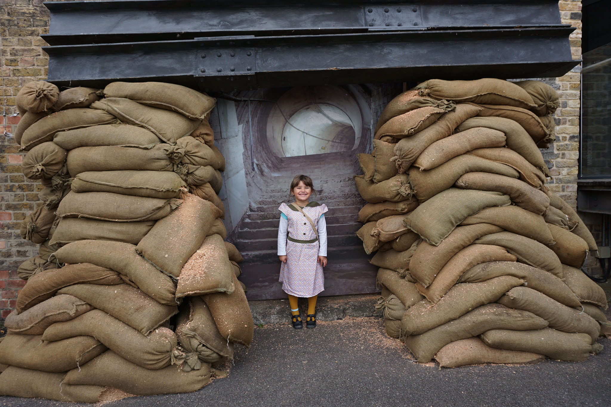 Here’s my little evacuee preparing for an air raid:
