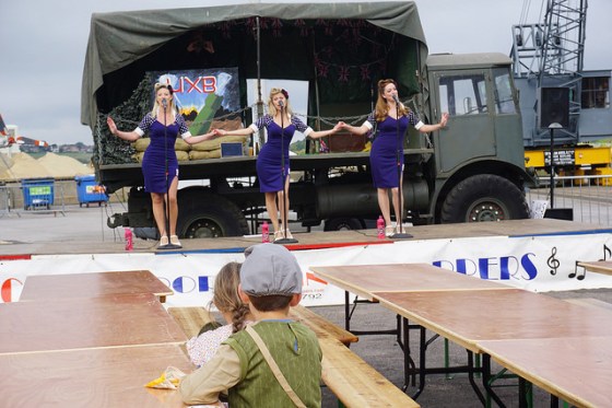 On top of the decoration and display, there was a packed programme of entertainment on a range of stages around the site. Here are my duo absorbed in the wartime music from the excellent Dolly Girls.