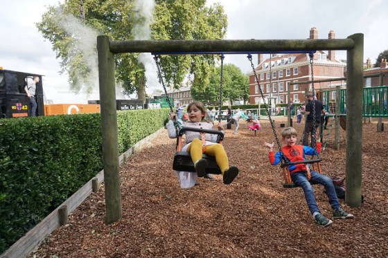They were more interested in the playgrounds of course! And there are several at the Dockyard. Here’s Sophie and Henry enjoying a swing while the dockyard steam train chuffs by!