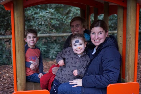 We started our break with a trip out to Berkshire to visit my brother and his family. After a delicious pub lunch, we headed to The Look Out for a run around in the adventure playground. Here’s Alex and I with my sister-in-law Sarah, and niece Rose (sporting some rather fine face paints!):