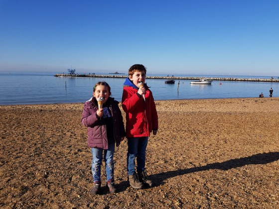 The weather on our first day dawned clear and sunny so, after a delicious breakfast at the Beach Cafe, we hired bikes and hit the Oyster Bay Trail. It was flat and easy cycling, so the children did brilliantly all the way to Herne Bay, some 5 miles away.