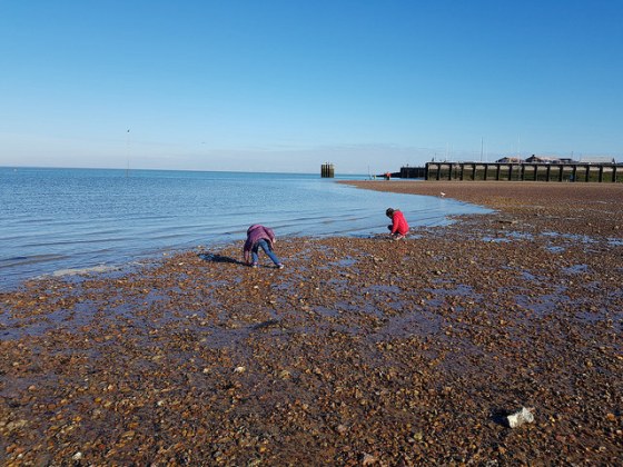 Alex and Sophie spent ages searching for the perfect skimming stones.